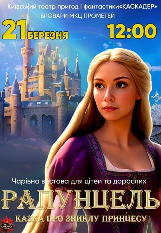 Казка-мюзикл "Рапунцель. Казка про зниклу принцесу" відбудеться 21 березня 2026, 12:00, субота в МКЦ Прометей. За допомогою сервісу internet-bilet.ua, Ви зможете з легкістю забронювати, замовити та купити квитки на концерт, спектакль, оперу, балет, майстер-класи, спортивні та дитячі заходи, що Вас цікавлять, оплативши їх найбільш зручним для Вас способом: через інтернет банківською карткою VISA/MasterCard, готівкою або кур'єром, якщо зробите замовлення квитка з доставкою.